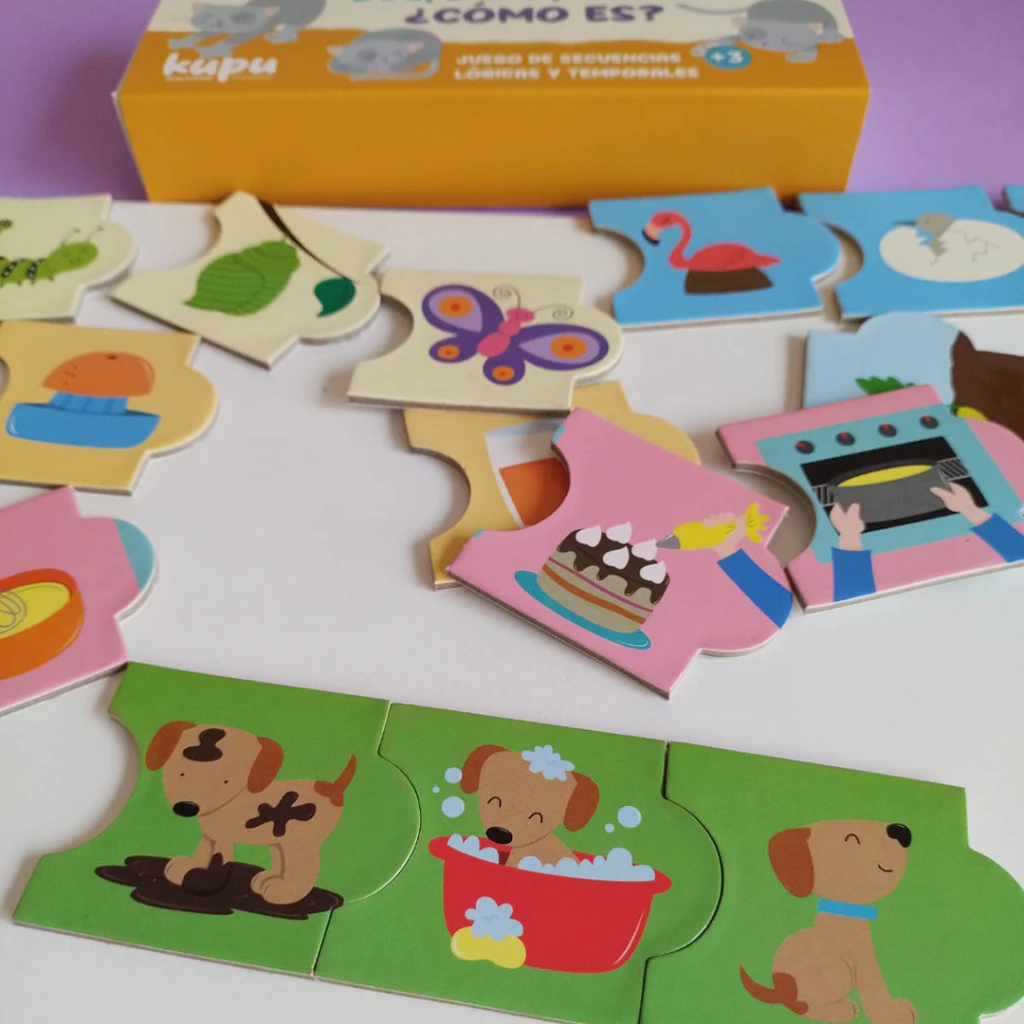 Este jugo de rompecabezas de 3 piezas es ideal para estimular el pensamiento lógico. Cada pieza se une siguiendo secuencias lógicas, estimula motricidad y la asociación.