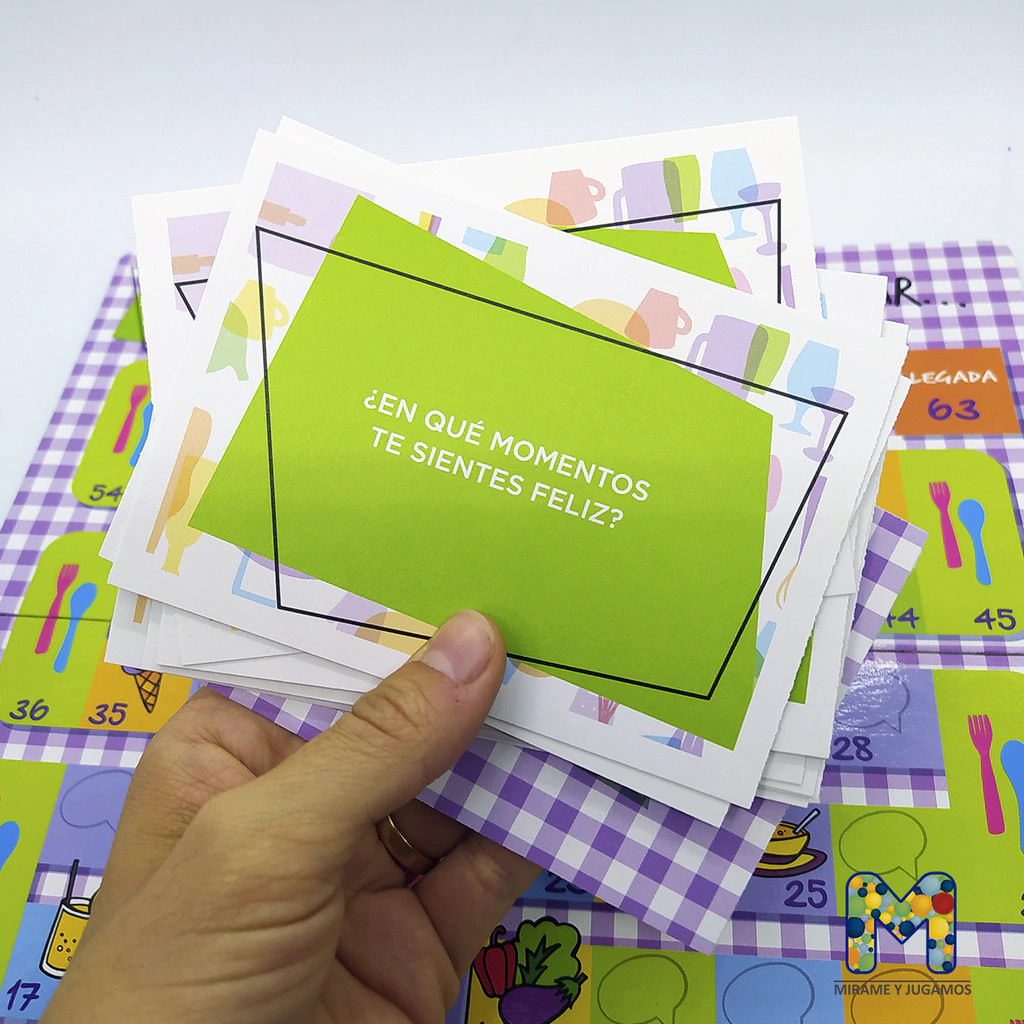 Todos a la mesa es un juego emocional, de conversación y de autoexpresión para todas las edades. Es una ocasión para compartir los pensamientos, expresar las emociones y afianzar la unión y el vínculo entre los jugadores. Contiene un tablero de cartón montado, y a medida que se va avanzando cada casillero invita a todos los jugadores a charlar sobre distintas temáticas. Contiene 50 tarjetas con distintos disparadores para conversar, de 8cm x 12 cm. El juego permite usarlo con el tablero e instrucciones o bien, usar las tarjetas solas para generar conversación en grupos.